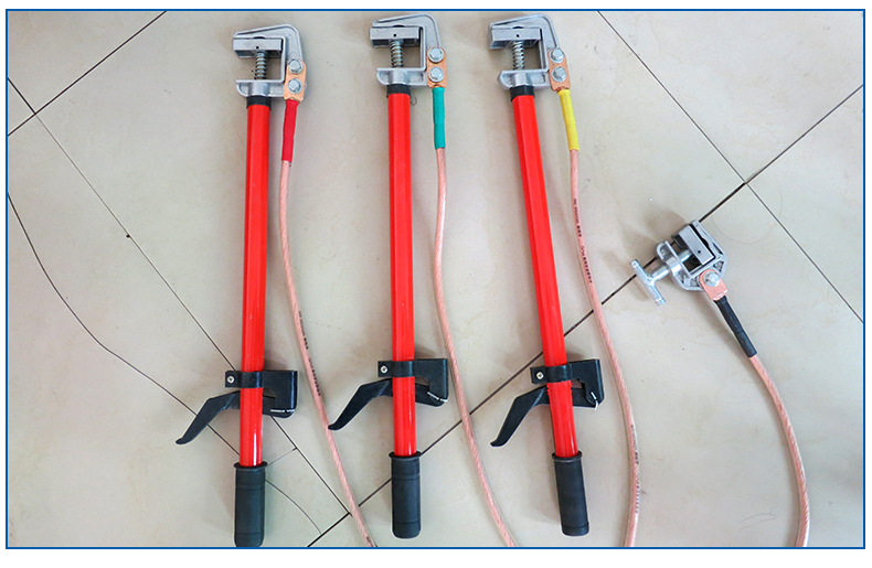 (3)制作工藝: 導(dǎo)線夾、接地夾采用鋁合金或紫銅壓鑄成形;操作棒是玻璃鋼環(huán)氧樹脂管;接地軟銅線采用多股軟銅線絞合而成,外覆透明絕緣護層。
