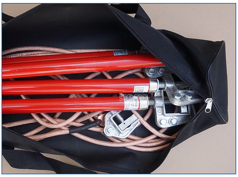 2)由絕緣操作桿、導(dǎo)線夾、短路線、接地線、接地端子、匯流夾、接地夾等組成。