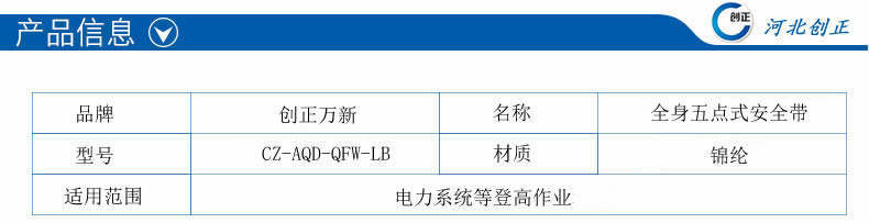 藍色全身五點式大鉤安全帶的詳細介紹: